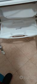 Nuovissimo bagnetto Cambio Cam con morbido fasciatoio dotato disistema antiribaltamento, vaschetta baby bagno inclusa, piani porta-oggetti. Età di utilizzo da 0 a 12 mesi circa.Chiusura ultracompatta. Vani portasapone e porta spugnetta Doccino Tappo e tubo per scarico dell’acqua Cassetto portaoggetti con porta flaconi 4 ruote di cui 2 con freno Ideale per i bagni più piccoli, può essere posizionato sui sanitari (altezza cassetto 40 cm) Pratico e innovativo sistema di chiusura ultracompatto con una sola mano Ritiro a mano (NO SPEDIZIONE) DIMENSIONI E PESI Aperto: L 95 - P 54 - H 104 cm Chiuso: L 83 - P 31 - H 93 cm Aperto L 95 x P 54 x H 104 cm. Kg 10,8