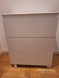 Fasciatoio / cassettiera italbaby dotato di 3 ampi cassetti e spazio per vaschetta removilile per bagnetto. Senza il supporto da fissare sopra per il cambio del bambino diventa una cassettiera versatile. Dotata di rotelle e piedini fissi.