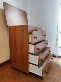 Fasciatoio cassettiere con ruote, marca Erbesi. Dimensioni: altezza cm.89, larghezza cm.74, profondità cm.49. Unico particolare: una rotella alla base è leggermente instabile e va fissata
