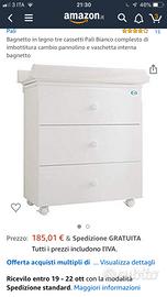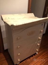 Fasciatoio Cassettiera PALI - 4 Cassetti - Robusto e Funzionale Vendo bellissimo fasciatoio della nota marca Pali, sinonimo di qualità e sicurezza per l'infanzia. Il mobile è molto robusto, spazioso e comodo grazie alle 4 ruote che permettono di spostarlo facilmente. Caratteristiche principali: Struttura: 4 ampi cassetti, perfetti per organizzare vestitini e occorrente per il cambio. Condizioni: Molto buone, struttura solida. Incluso: Imbottitura superiore (ancora funzionante ma sostituibile). Nota: Viene venduto senza vaschetta interna (facilmente reperibile su Amazon o nei negozi specializzati a pochi euro). Per cambio pannolini, vestiti bambini . Robusto e comodo. Prezzo ribassato. Costo nuovo 180 euro. Nessun problema per aiuto caricamento in auto
