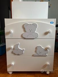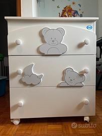 Fasciatoio cassettiera Pali in legno 3 cassetti capienti 1 materassino fasciatoio bianco più un secondo materassino in regalo