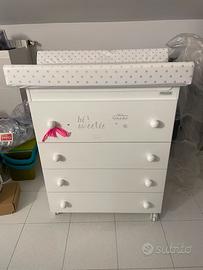 Fasciatoio cassettiera Micuna con vaschetta per lavaggio. La tela del fasciatoio è danneggiata, originale costa circa 30€