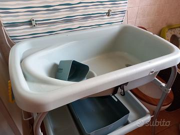 Vendesi urgentemente fasciatoio Chicco con materassino sottile rimovibile per lavaggio, vaschetta rimovibile per il bagnetto con sfiatatoio per l'acqua. Il fasciatoio è pieghevole una volta rimossa la vaschetta. E' stato sempre a casa (non in garage o cantina).
