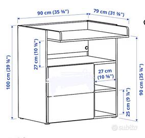 Mobile Fasciatoio SMASTAD, bianco con due cassettoni. Con possibilita di modificare la posizione del ripiano e far diventare scrivania. Come in foto. Ritiro presso la mia abitazione, eventuale smontaggio a carico dell’acquirente. Prezzo trattabile.