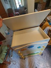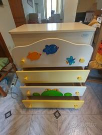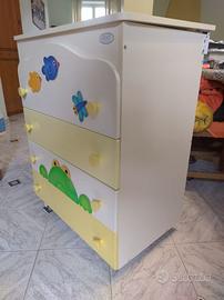 Fasciatoio con anta ribaltabile e 4 cassetti capienti con disegno rana, uccelli e libellula, marca Azur Loppiano.