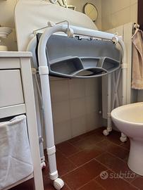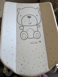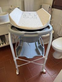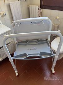 Bellissimo fasciatoio con vaschetta bagnetto (rimovibile) CAM. Pratico supporto imbottito per il cambio. Perfetto anche per gli spazi più ristretti, dotato di ripiano porta oggetti, si richiude facilmente e senza vasca occupa pochissimo spazio. Ideale anche per le case di villeggiatura, si sposta facilmente anche grazie alle comode ruote. Colore bianco e grigio, usato pochissimo.