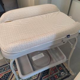 Fasciatoio con bagnetto della chicco con porta oggetti porta asciugamano vassoio inferiore comodo per ospitare il necessario per i cambi pannolino tubo per scaricare l'acqua allungato cuscino superiore morbido (leggermente segnato come in foto) ruote per un trasporto comodo