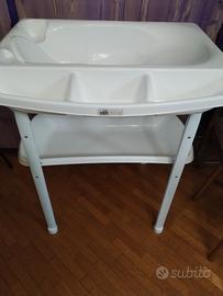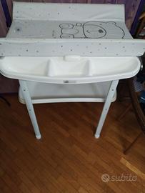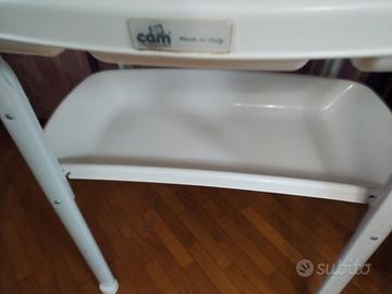 Grazioso e Funzionale Fasciatoio CAM munito di morbido cuscino senza difetti. Il cuscino si alza lasciando spazio a una comoda ed ergonomica vaschetta per fare il bagnetto attrezzata da vani porta oggetti e valvola di scarico dell'acqua. Sottostante ulteriore vaschetta porta pannolini, asciugamani o altri oggetti comodi ed utili per l'igiene quotidiana del bebè. Entrambe le vaschette si tolgono. Ottimo stato: bagnetto mai usato, solo cuscino per cambio pannolini. Dimensioni 103x55x73 circa zona ritiro: Milano nord e hinterland , Monza e Brianza, Lecco e Como
