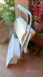 Fasciatoio nuovo, in condizioni ottime solo un piccolo strappo su un angolo del cuscino,ma non ne pregiudica l'uso. Vaschetta nuova con porta oggetti. Salva spazio perché si richiude e puo essere sistemata sopra un bidet. Molto solida e funzionale