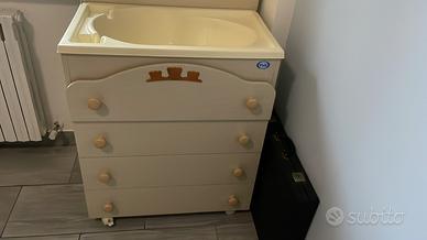 fasciatoio con vasca per il bagnetto con cassettiera 4 cassetti