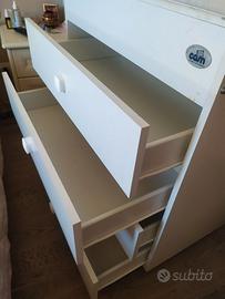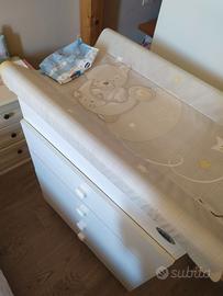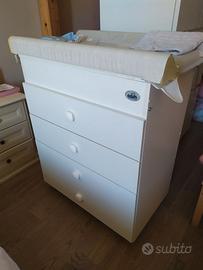 Fasciatoio usato circa 3 anni cassetti perfettamente funzionanti, in buono stato andrebbe cambiato giusto la parte sopra in gomma piuma dove viene cambiato il bambino.