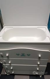 Fasciatoio con mobile e vaschetta in discrete condizioni con 3 ferma cassetti. Necessità di alcuni interventi di rinforzo della sul primo cassetto. Dimensioni 94x80x50