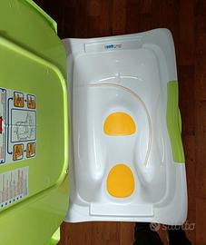 fasciatoio con materassino morbido, sistema antiribaltamento, Vasca da bagno antiscivolo inclusa, con tubo per svuotare l'acqua e sotto un comodo ripiano per riporre creme e pannolini. non spedisco.