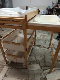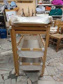 Vendo fasciatoio in legno chiaro, ottimo stato. Completo di materassino per cambio ( solo il materassino si deve rivestire), vaschetta per bagnetto integrata e due ampi ripiani con cesti portaoggetti. Facile da spostare grazie alle ruote