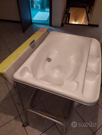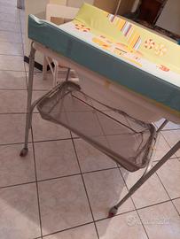 Fasciatoio removibile con vaschetta peril bagnetto Cam per bambini , con ruote che si bloccano, con porta pannolini e asciugamani sotto (le viti sono storte ma con un laccetto sta su benissimo)