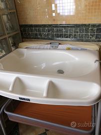 Fasciatoio con vaschetta Cam, piano fasciatoio reclinabile lateralmente per accedere alla vaschetta. Ampio ripiano inferiore per riporre pannolini, accappatoio ecc.