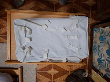Descrizione Vendo pratico fasciatoio in legno della marca tedesca roba. La struttura in legno è in buone condizioni e molto stabile. È già stato smontato per un trasporto più facile. Punti di forza: Vaschetta per il bagnetto: Integrata e MAI USATA, praticamente nuova. Mobilità: Dotato di ruote con freno. Pronto all'uso: Tutte le viti e i componenti in legno sono presenti. Note sulla condizione: Manca uno dei due ripiani grandi in stoffa (si è rotto con l'uso e l'abbiamo rimosso). L'altro ripiano è presente e perfettamente utilizzabile. Il materassino superiore non è incluso (per motivi igienici). Il mobile è usato, ma la struttura in legno è intatta e sicura. Prezzo: 60 € (Trattabili) Ritiro a mano a Alzano Lombardo (BG).