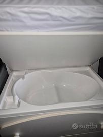 👶 Fasciatoio con Vaschetta Integrata – Come Nuovo! Vendesi pratico e funzionale mobile fasciatoio con vaschetta per il bagnetto incorporata, usato pochissimo e mantenuto in condizioni impeccabili. La soluzione ideale per chi cerca comodità e igiene in un unico spazio compatto. 📋 Caratteristiche Principali: 2 in 1: Piano fasciatoio morbido e imbottito (facilmente lavabile) che si solleva per rivelare una vaschetta anatomica sottostante. Organizzazione: Dotato di 3 ampi cassetti per tenere pannolini, creme e asciugamani sempre a portata di mano. Sicurezza: Struttura stabile con bordi rialzati anti-caduta.