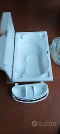 La parte imbottita si può appoggiare su una qualsiasi cassettiera o tavolo la vaschetta si può utilizzare in vasca come riduzione