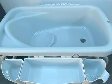 Il Cuddle & Bubble Comfort by CHICCO è regolabile in 3 posizioni per adattarsi a tutte le altezze. Dotato di: vaschetta ergonomica che in posizione semi-distesa puo essere utilizzata dalla nascita e in posizione seduta dai 6 mesi; materasso per il cambio (lavabile); portaoggetti con ampio spazio per riporre i prodotti da bagno. Il bagnetto Cuddle&Bubble si chiude facilmente grazie a due comodi bottoni
