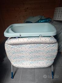 Comodissimo, può fungere sia da fasciatoio che da vasca per il bagnetto, permettendoci di stare dritti con la schiena. È richiudi île e facilmente manovrabile grazie alle rotelline. Ha un'ampia base di appoggio per pannolini, ascigameni, salviette ecc.