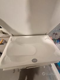 Fasciatoio Erbesi in legno di faggio con vaschetta incorporata, ruote con sistema frenante. Ha 3 cassetti completo di coprifasciatoio in spugna