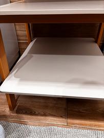 Fasciatoio in legno di faggio, con due ruote posteriori, due ripiani e una cesta estraibile. Dimensioni 65Lx70profonditáx93H. Ben tenuto.