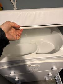 Vendo fasciatoio in legno foppapedretti con vaschetta bagnetto ad incasso nel mobile. Tenuto beissimo, solo un taglio nel cuscino fasciatoio come da foto che si risolve rivestendolo con una fodera (acquistbili su amazon) .