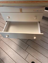 Fasciatoio con cassettiera per bagnetto, ha il materassino reclinabile per alloggiare una vaschetta per il bagnetto. Usato ma in buono stato, da sostituire il materassino (costo circa 25 euro su Amazon)