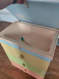 buongiorno. per trasloco e inutilizzo vendo fasciatoio con 3 cassetti e vasca rimovibile per fare il bagnetto. stato di conservazione più che buono come da foto nessun difetto evidente alla vista ritiro a mano Torino