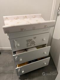 Vendo Fasciatoio Foppapedretti in perfette condizioni, ruote e cassetti perfettamente funzionanti. Completo di vaschetta per bagnetto. Regalo insieme mangiapannolini maialino Foppapedretti e 5 coprifasciatoi di spugna.