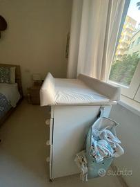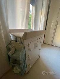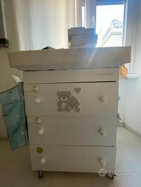 Il bagnetto fasciatoio in legno Tenerorso di Foppapedretti è trasformabile in comoda cassettiera. È dotato di tre ampi cassetti, piano ribaltabile con sistema di sicurezza ammortizzato e pratico materassino. È caratterizzato da raffinate decorazioni sul cassetto superiore: due simpatici e teneri orsetti insieme a un cuoricino nello stesso tono di grigio. Ha ruote gommate antigraffio, con sistema frenante, per facilitare gli spostamenti. La struttura solida e durevole nel tempo è 100% made in Italy! Dimensioni aperto cm: H 131 | P 50 | L 69 Dimensioni chiuso cm: H 89 | P 47 | L 69