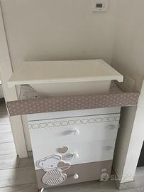 Tramutabile in una comoda cassettiera, il bagnetto fasciatoio Dolcecuore e provvisto di vaschetta estraibile, rubinetto per lo scarico, piano ribaltabile e materassino. Dispone inoltre di tre ampi cassetti, ruote antigraffio, sistema frenante ed e caratterizzato da tinte e decori "soft-touch" che lorendono piacevole al tatto e gli conferiscono una nota classica ed elegante. Fornito senza cuscino morbido. Informazioni prodotto Struttura 100% made in Italy. Dimensioni del bagnetto: 89 x 47 x 69 cm Peso del bagnetto: 35 kg