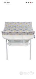 Faciatoio per neonati con vaschetta per bagnetto e base d’appoggio con tubicino per scarico acqua e spazi d’appoggio
