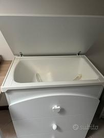 In un classico color bianco, si compone di tre cassetti con guide in metallo, il primo apribile anche con la vaschetta inserita. Il fasciatoio è composto da un piano ribaltabile con sistema di sicurezza con vaschetta anatomica ed estraibile (ed un tubo per scaricare l'acqua).