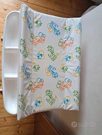 fasciatoio in ottime condizioni, si è tagliata leggermente la plastica in un angolo. Vaschetta per il bagnetto usata 1 volta