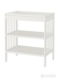 Fasciatoio in legno Gulliver ikea con ruote e materassino impermeabile. Robusto e stabile e con aggiunta di ruote adatte al peso che supportano