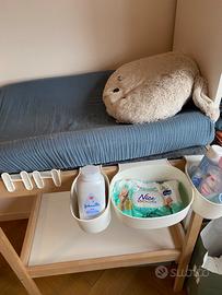 Fasciatoio Ikea completo di gadget : cuscino con la fodera morbidissima azzurra, contenitori e cestino spazzatura . Se interessato si chiede di scrivere su WhatsApp 3204418101 grazie