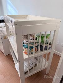 Fasciatoio in legno bianco con cuscino da cambiare o da coprire con fodera in tessuto.