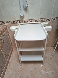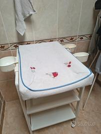 Vendo fasciatoio ancora in buonissime condizioni. comodissimo con ruote. compreso di materasso e 2 coprimaterasso e set contenitori Ikea ( nella foto manca il cestino porta pannolini sempre compreso). lievi segni di usura sulla vernice sulle ruote. possibile consegna anche a Zevio, e lago di Garda.