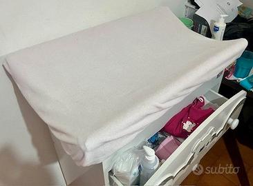 Come da titolo vendo fasciatoio dotato di ruote con freno di sicurezza per immobilizzarlo, formato da tre cassetti molto capienti, sotto al ripiano dove cambiare il piccolo c’è una vasca da bagno dotata di kit per smaltire l’acqua. In aggiunta regalo anche un coprimaterasso (adatto al cuscino del fasciatoio) in cotone con angoli elasticizzati per una migliore aderenza. Il materassino é leggermente usurato ma ancora tranquillamente utilizzabile e nel caso si può sostituire. Per maggiori dettagli contattatemi che sono a disposizione.