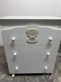 Vendo fasciatoio Italbaby modello Happy Family con comoda cassettiera integrata a 3 cassetti. ✔️ Usato ma in ottime condizioni ✔️ Struttura solida e stabile ✔️ Piano fasciatoio con vaschetta per il bagnetto integrata ✔️ Ampio spazio contenitivo nei cassetti ✔️ Design dolce con decorazione orsetto, perfetto per cameretta bimbo/bimba Ideale per cambiare e fare il bagnetto al neonato in totale comodità, tutto in un unico mobile.