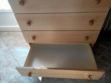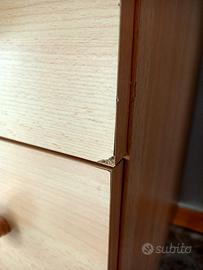 Splendido fasciatoio marca Mibb, con segni di usura ma in ottimo stato. 4 cassetti, vaschetta per il bagnetto e anta apribile con blocco di sicurezza. Ruote piroettanti. un cassetto ha preso un po' di acqua e si è rovinato ma è strutturalmente sano.