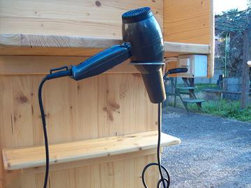 Sotto il lato destro, troverete il supporto esterno per alloggiare l'indispensabile phon per asciugare bene la pelle ed i capelli del vostro bimbo/a in modo da eliminare completamente l'umidità, prima di vestirlo/a, ed un set di prese, con l’interruttore per il comando della lampada superiore.