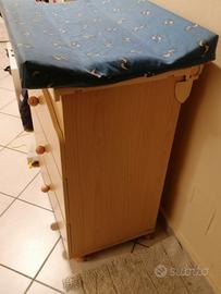 Mobiletto fasciatoio ben tenuto con tre cassetti più vasca con rotelle. Misure 66x90x40 (LxAxP)