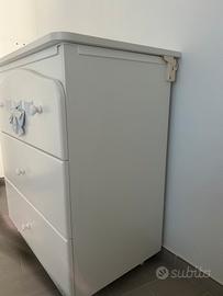 Fasciatoio neonato Nanan,con Cassettiera e Vaschetta bagnetto Estraibile colore Bianco.Misure 72x45x87cm