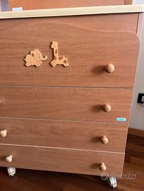 Colore Ciliegio, 4 cassetti, rotelle pirottanti per facilitare lo spostamento.