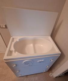 Vendo fasciatoio marca "Pali" in ottimo stato, bianco con decorazione di mongolfiere, 3 ampi cassetti, ruote con fermi, vaschetta per bagnetto integrata e removibile (come da foto).