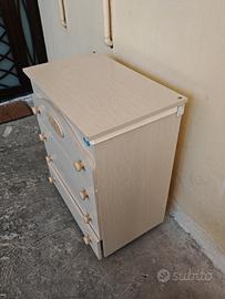 Manca il materassino di spugna dove si fa il cambio al bambino. Presente qualche "pizzico" sulla struttura e l'ultimo cassetto andrebbe registrato perché non chiude più fino in fondo. Comunque io l'ho usato fino ad oggi che ho cambiato i mobili