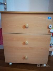 fasciatoio su ruote con tre cassetti marca Pali, completo di vasca per il bagnetto (NO cuscino superiore) dimensioni 75 x 45 x H 90